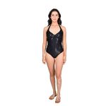 La Malla Textura con Brillos 218 Escote Halter Negro Mujer Mix & Match es un traje de baño entero que combina elegancia y sofisticación. Su textura brillante con efecto de escamas aporta un acabado moderno y llamativo. Cuenta con escote halter atado al cuello mediante lazada, lo que permite un ajuste personalizado y cómodo, mientras que la espalda abierta aporta un toque fresco y estilizado. Un detalle metálico decorativo en el centro del busto completa el diseño, ofreciendo un acabado delicado y femenino.