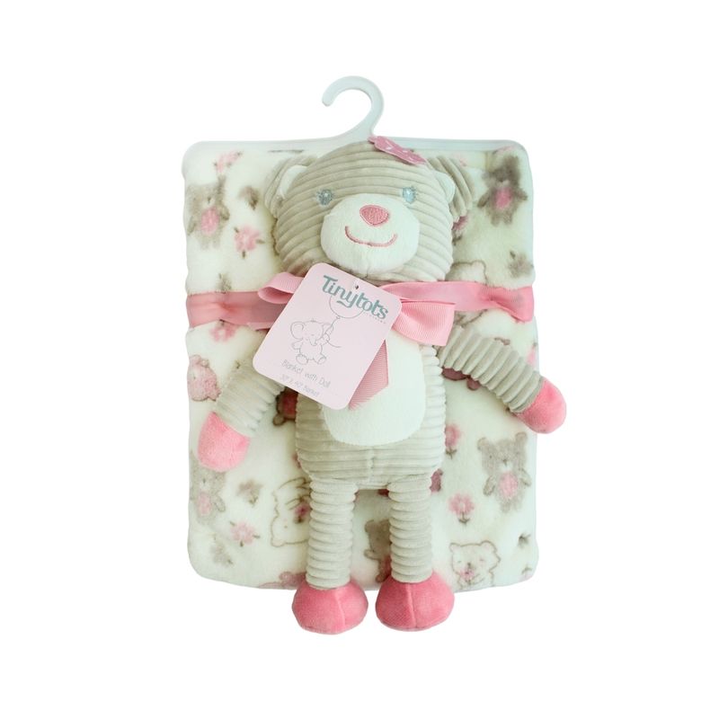 La manta Tiny Tots es ideal para usar en la cuna, cochecito o para momentos de juego supervisado. Su tamaño y suavidad permiten envolver al bebé cómodamente, brindando sensación de seguridad y calidez. El peluche incluido no solo ofrece compañía y ternura, sino que también puede convertirse en un objeto de apego que acompañe a tu hija durante los primeros años.