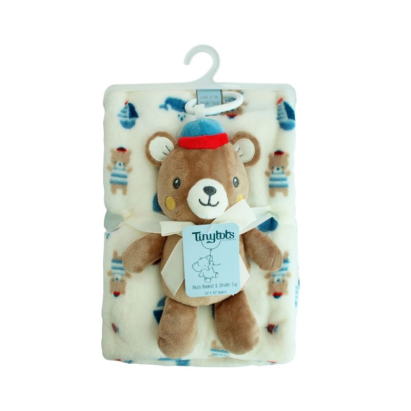 Descubrí el set de regalo Tiny Tots, diseñado especialmente para bebés varones, que combina ternura, suavidad y diversión. Este set incluye una manta color crema, decorada con un encantador estampado marino de ositos marineros y barcos, ideal para brindar calidez y confort al bebé durante sus primeros meses. Acompaña la manta un peluche de osito marrón con gorro, tierno y adorable, que agrega un toque lúdico y reconfortante. Este set es perfecto para baby shower, nacimiento o para acompañar al bebé en la cuna o cochecito. "La medida es de aproximadamente 30x40 cm, ideal para quienes buscan un tamaño versátil"