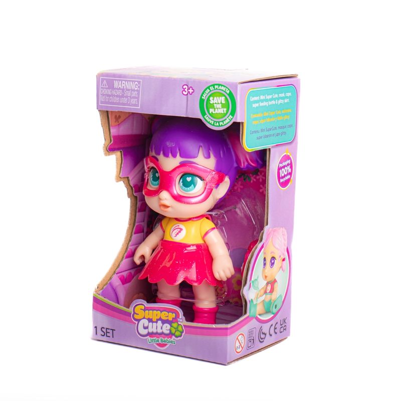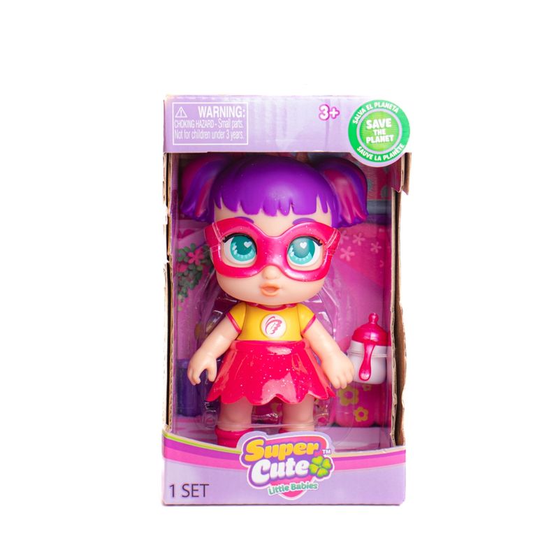 Las muñecas Super Cute Little Babies son mucho más que bebés, al darles su biberón se transformarán en ¡Superheroínas! Y comenzaran con su misión de salvar el planeta en equipo. Gabi tiene el poder de controlar el sol. Se puede poner la versión de Gabi bebe con su pañal y su babero y al darle su biberón que viene incluido se transforma en superheroina poniéndole el antifaz y la capa. Se ilumina su pecho. Tiene la cabeza, piernas y brazos articulados para mayor diversión.