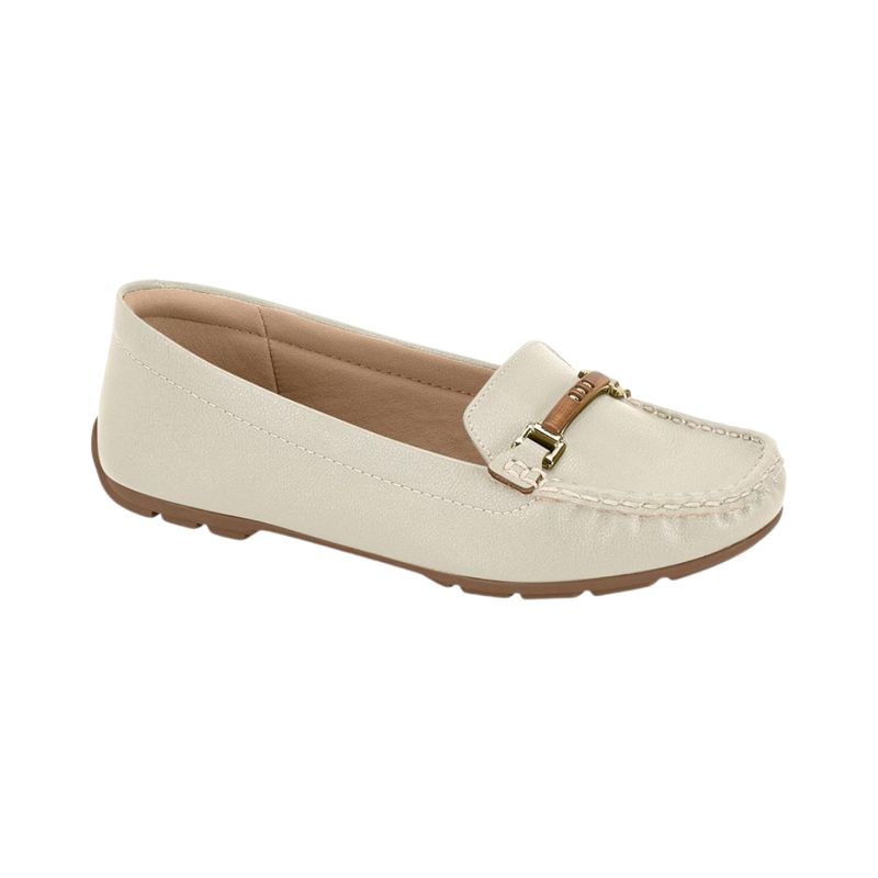 El Mocasin Con Hebilla Dorada Blanco de Modare es un calzado femenino que combina elegancia y versatilidad. Su diseño clásico con hebilla dorada aporta un detalle sofisticado, ideal para complementar tanto atuendos casuales como looks más formales, aportando un toque de luminosidad gracias a su color blanco.