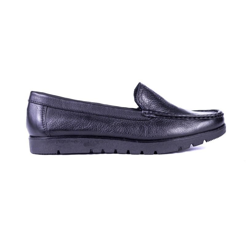 Mocasin de cuero con suela de goma.
