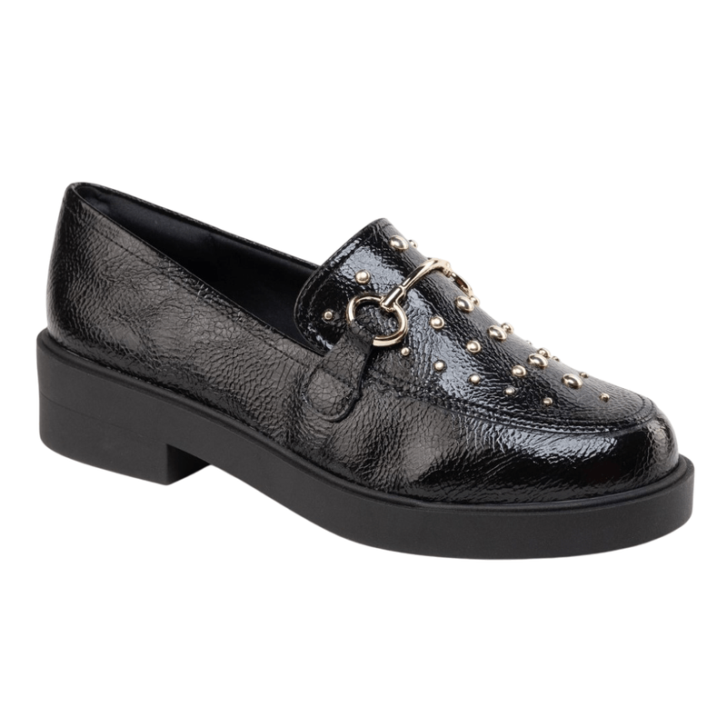 El mocasín negro con tachas de Bebece combina elegancia y actitud en un diseño moderno y versátil. Confeccionado en material sintético de alta calidad, ofrece durabilidad y confort. Sus detalles metálicos aportan un toque sofisticado, ideal para realzar cualquier look. La plantilla acolchada y la suela flexible aseguran comodidad en cada paso. Perfecto para el día a día, oficina o salidas casuales, combina con jeans, faldas y pantalones de vestir.
