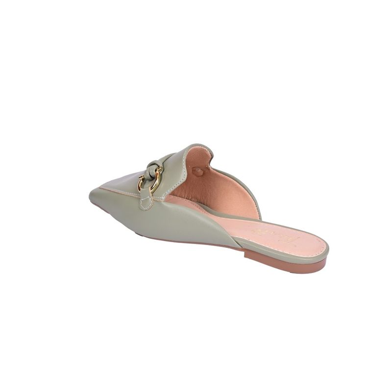 El mocasín Tiare para mujer en color verde matte malva presenta un diseño moderno y elegante, ideal para quienes buscan comodidad sin perder estilo. Su punta cuadrada aporta un toque contemporáneo, mientras que el adorno metálico dorado en la parte superior añade un detalle sofisticado que realza cualquier look.