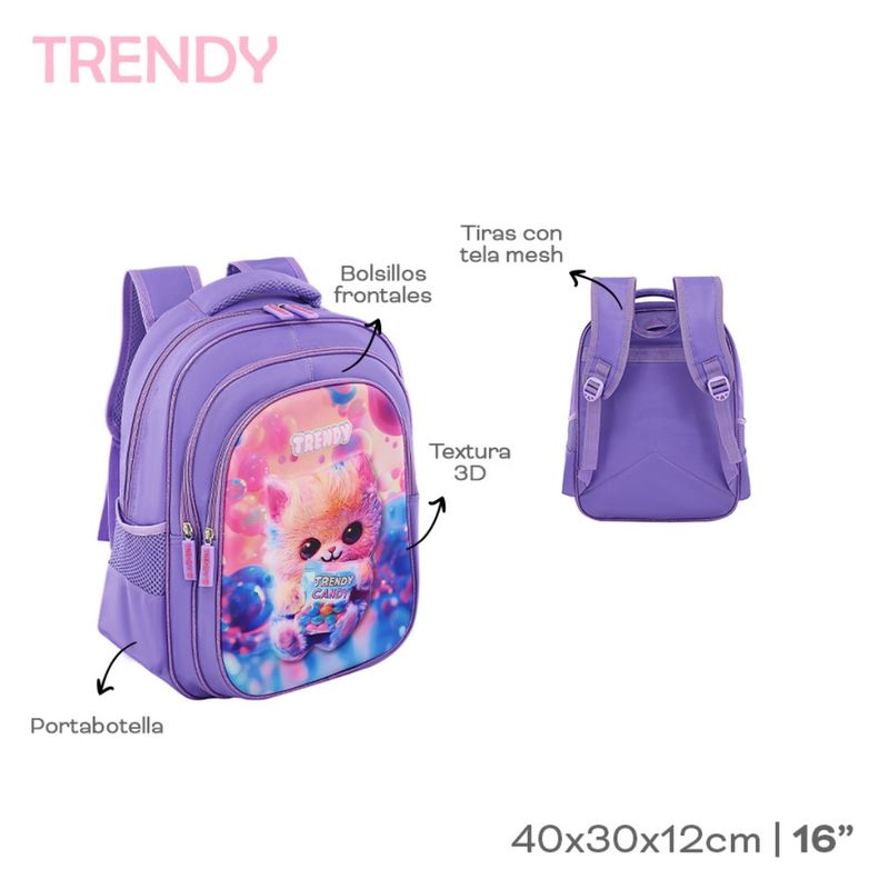 Puede combinarse con loncheras, cartucheras u otros accesorios Trendy para un conjunto coordinado.
