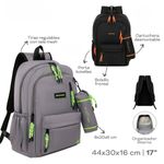 Con capacidad para laptops de hasta 17 pulgadas, esta mochila permite transportar todos los elementos esenciales del colegio y actividades extracurriculares de manera organizada y segura. Los múltiples compartimentos facilitan mantener todo al alcance y en orden.