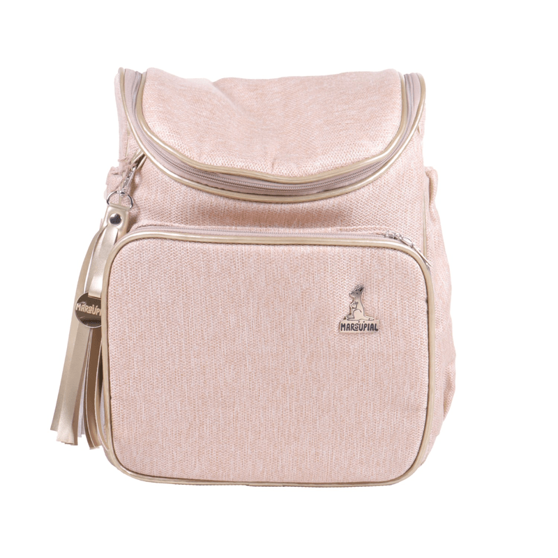 Cambiador y porta toallitas húmedas. Bolsillo frontal con una apertura total.