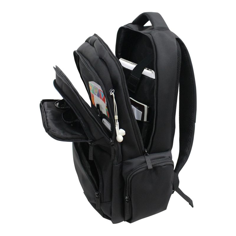 Diseño nuevo y de alta calidad, 2 compartimentos principales grandes con cremallera y bolsillo para laptop de 15", bolsillo para cable de Audífonos, bolsillo organizador, práctico y de moda, Poliéster, sistema Airflow, 40x16x46 cm.