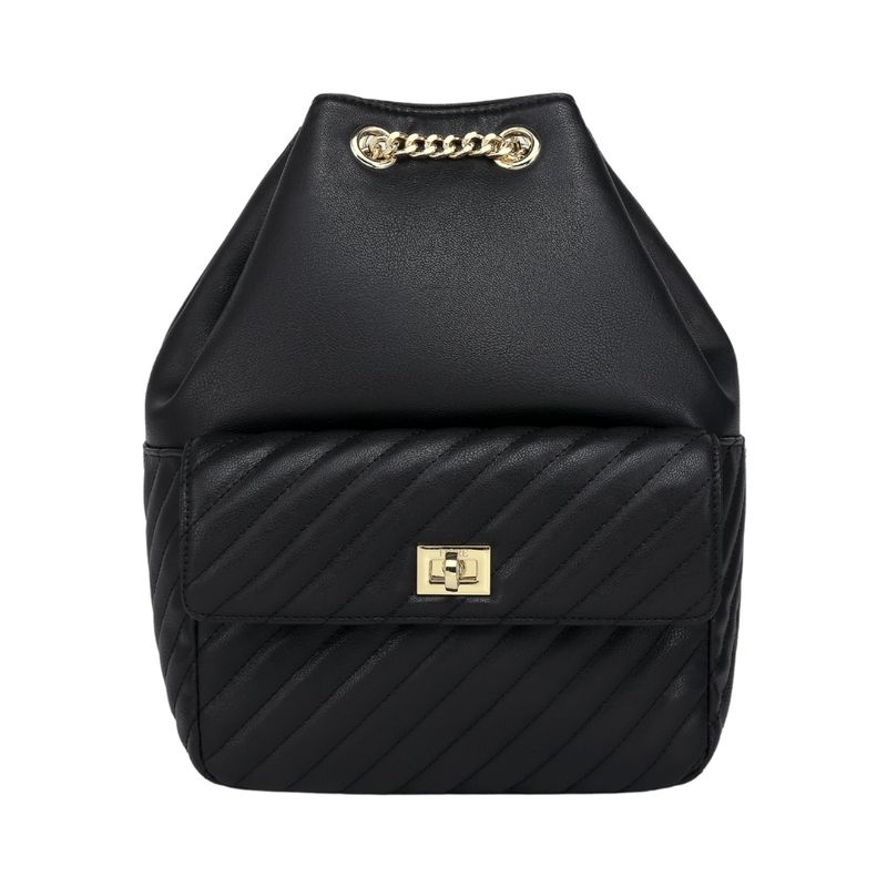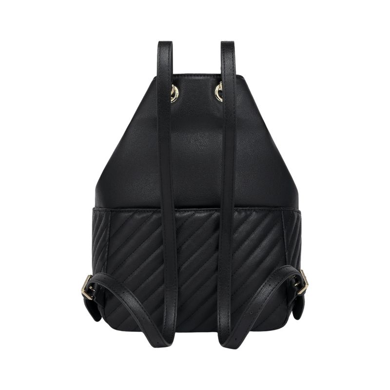 Esta mochila negra es un accesorio versátil y moderno, diseñado para mujeres que buscan combinar practicidad con estilo. Su diseño funcional y contemporáneo permite llevar tus objetos personales de manera organizada, aportando un toque de elegancia discreta a cualquier look. Es ideal tanto para el uso diario como para actividades recreativas, laborales o educativas, adaptándose fácilmente a distintos contextos.