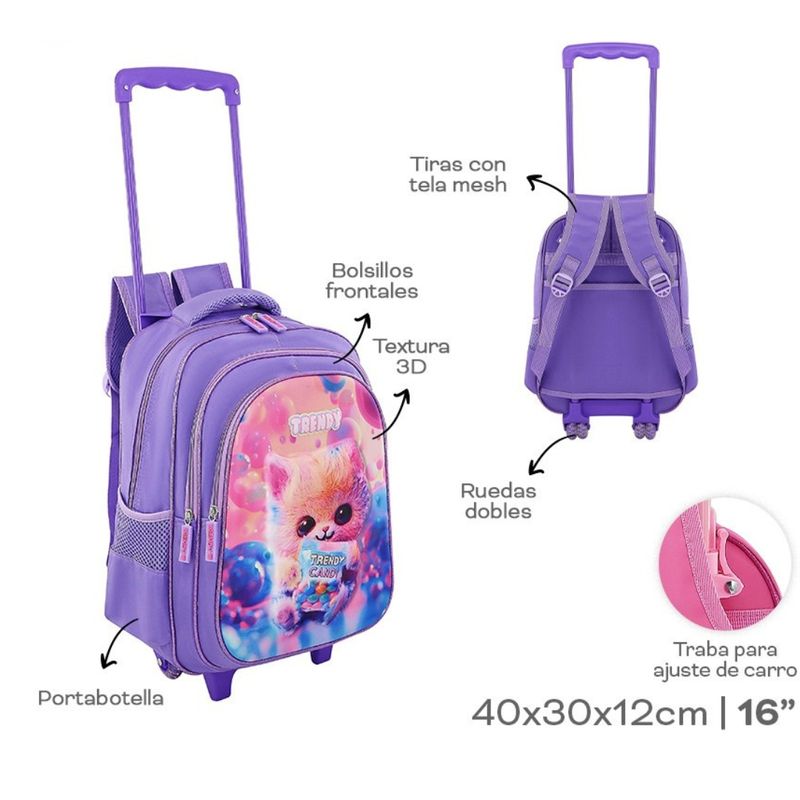 La Mochila Resistente Niña Carrito Lila Trendy está diseñada especialmente para niñas, combinando funcionalidad y un estilo moderno y divertido. Su diseño con detalles de carrito aporta un toque llamativo y atractivo, mientras que los compartimentos amplios permiten organizar libros, cuadernos, carpetas y dispositivos electrónicos de manera práctica y ordenada.