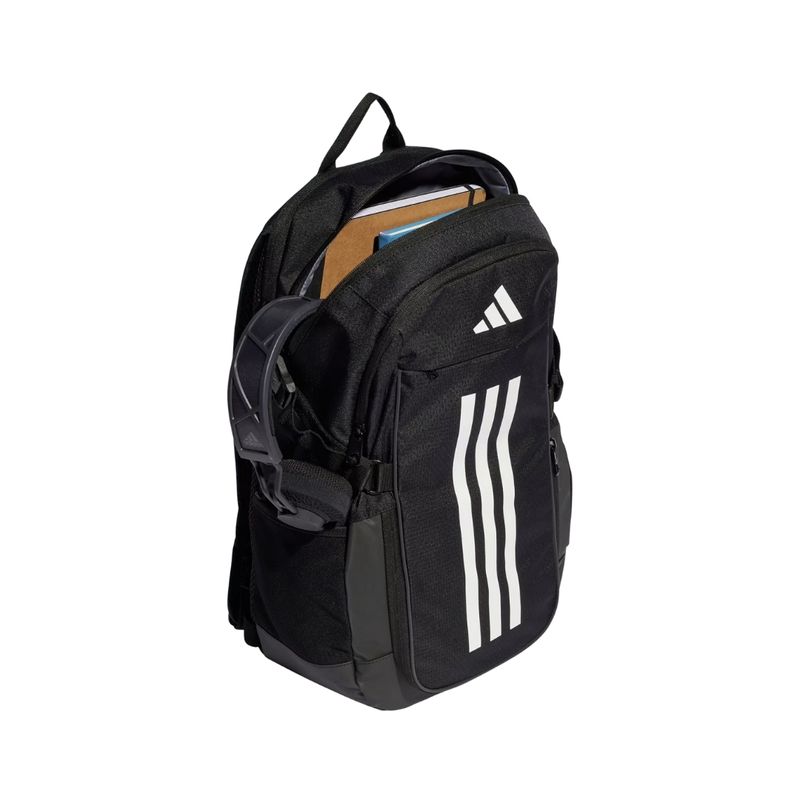 El panel trasero incorpora tecnología AEROREADY, que ayuda a absorber la humedad y contribuye a mantener una sensación de frescura durante el uso prolongado. Las correas laterales de compresión permiten ajustar la carga según la cantidad de objetos, brindando mayor estabilidad al moverte. Además, su base revestida ofrece mayor resistencia al desgaste, ideal para el uso diario.