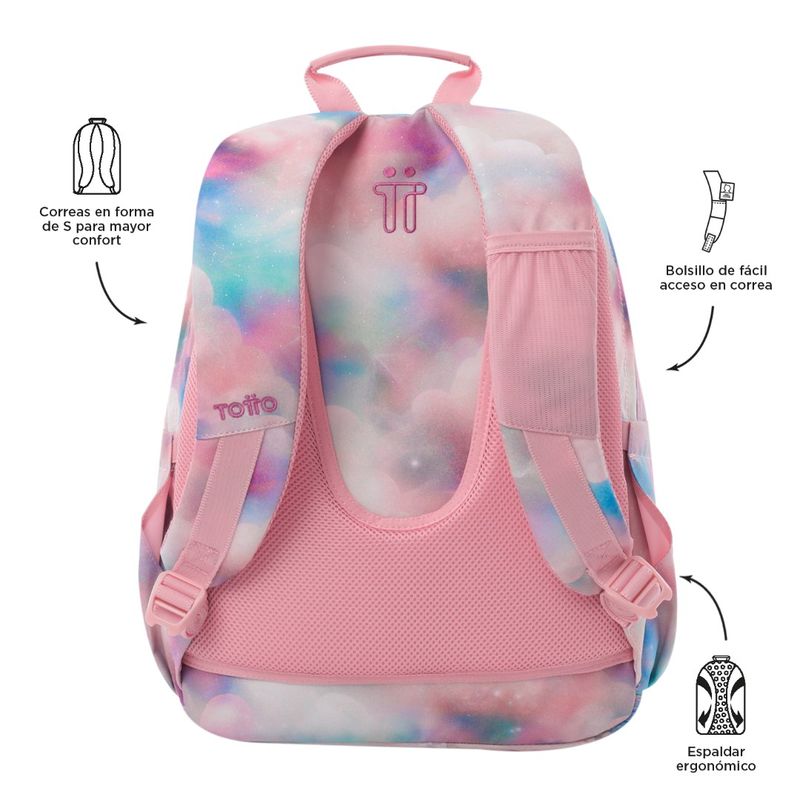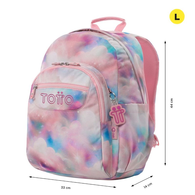 ¡No te quedes sin el tuyo! Este morral grande con acabado glitter brillante es ideal para llevar tu portátil de 14". Fabricado con material reciclado de 10 botellas, ofrece 20 litros de capacidad, organizador con portallave, bolsillos frontales de acceso rápido y compartimento para botella. Sus correas ergonómicas con Air Mesh garantizan comodidad.