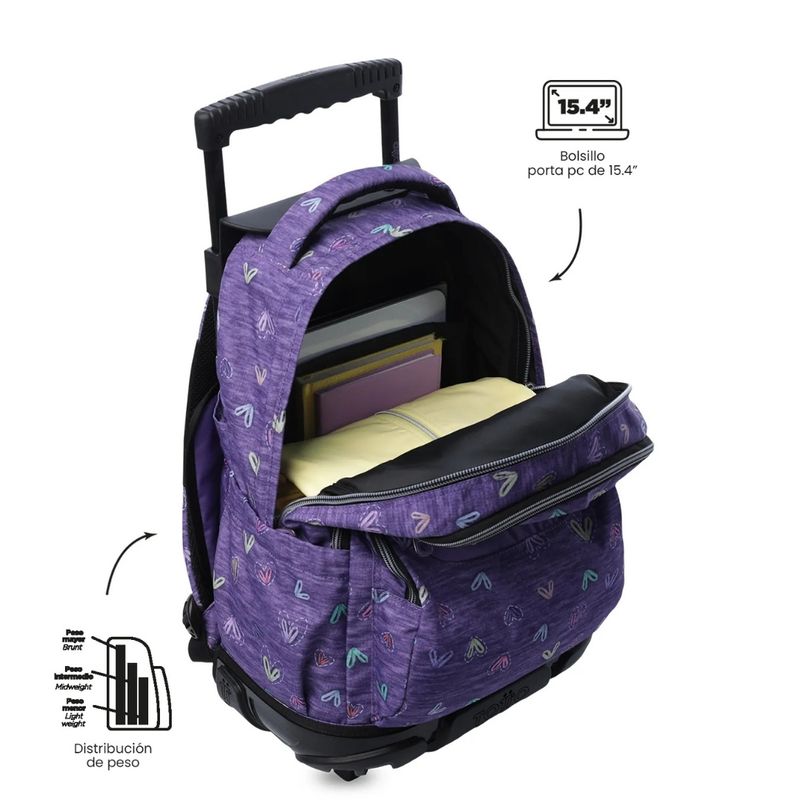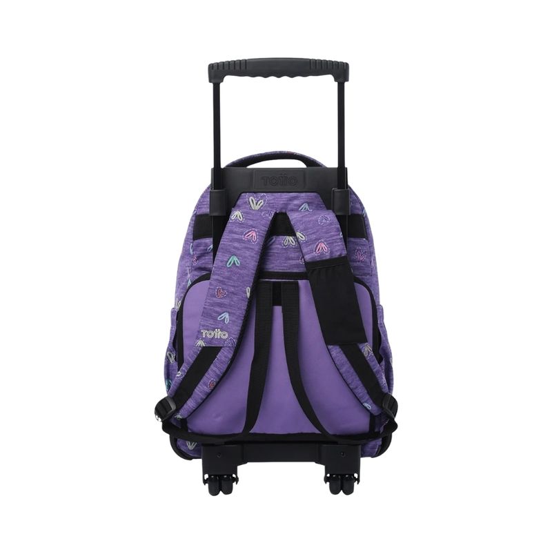 El Morral con Rueditas Bomper Renglon Butterflies 25 Litros Totto combina estilo, durabilidad y practicidad, convirtiéndose en el compañero perfecto para las aventuras escolares de las niñas.