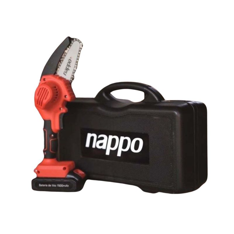 MOTOSIERRA DE MANO NAPPO NHJ-144 4" · Cadena de 4". · 2 baterías incluidas de 1500mAh c/u. · 2 cadenas incluidas. · Maletín rigido para transporte y almacenamiento. · Voltaje: 18V.
