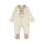 El Osito Manga Larga Crema de Original Marines para bebé niño combina ternura y funcionalidad. Con pies cubiertos y manga larga, mantiene al bebé abrigado y cómodo durante todo el día. Los detalles a rayas en el cuello y los pies aportan un toque clásico, mientras que el bordado de oso de peluche en el pecho le da un diseño encantador y divertido.