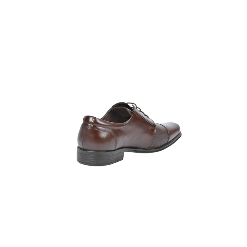 Confeccionado en cuero, este zapato presenta cordones que permiten un ajuste firme y cómodo. La punta cap toe con textura aporta un detalle distintivo que realza el diseño, mientras que la suela oscura con tacón bajo brinda estabilidad y confort durante la jornada, manteniendo una pisada segura.