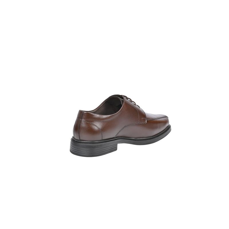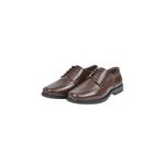 Fabricado en cuero duradero y resistente, este zapato incorpora cordones que aseguran un ajuste firme y cómodo. Su acabado en tono marrón castaño ofrece un estilo versátil y atemporal, mientras que la suela de tacón bajo proporciona estabilidad y confort durante todo el día.