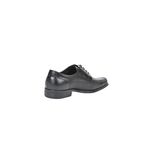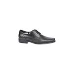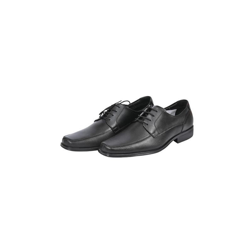 Fabricado en cuero duradero y resistente, este zapato incluye cordones que permiten un ajuste firme y cómodo. La suela frontal cuadrada aporta estabilidad y un detalle moderno al diseño, mientras que el acabado negro proporciona un estilo versátil y atemporal.