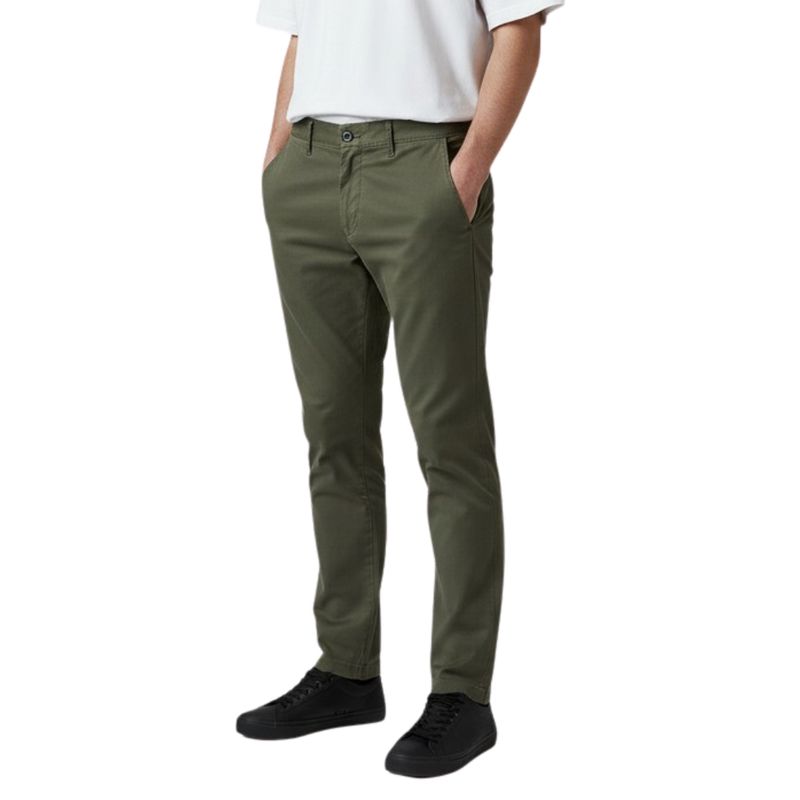 Pantalón de estilo básico en color verde oscuro, ideal para quienes buscan una prenda versátil y cómoda para el uso diario. Su diseño clásico permite combinarlo fácilmente con distintos tipos de prendas, logrando un look equilibrado tanto para ocasiones casuales como para ambientes más formales.