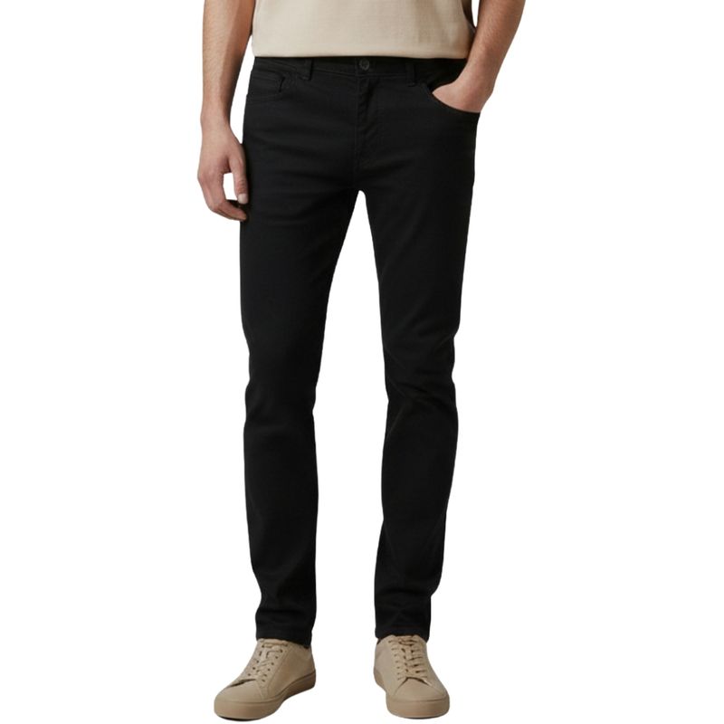 Este pantalón básico tipo chino en color negro es una prenda versátil y elegante, perfecta para el guardarropa masculino. Su diseño clásico permite adaptarse tanto a ocasiones formales como a salidas casuales, ofreciendo un look pulido y moderno sin perder comodidad.