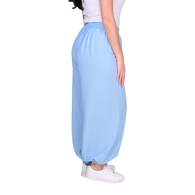 El Pantalón Celeste Bombe de Tiare combina estilo moderno y comodidad en una prenda versátil para la mujer contemporánea. Su diseño con cintura fruncida y puños elásticos en los tobillos permite un ajuste cómodo y seguro, mientras que el volumen amplio en las piernas crea una silueta abullonada y elegante. Este corte ofrece movimiento y fluidez, aportando un toque de sofisticación y dinamismo a cualquier look.