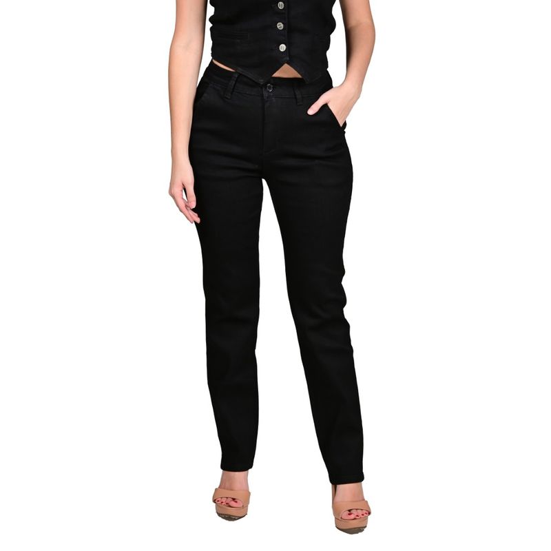El diseño incluye bolsillos laterales funcionales y bolsillos de ojal o ribete en la parte trasera, que aportan practicidad y sofisticación, manteniendo la estética minimalista y elegante que caracteriza a los pantalones chinos. Su color negro liso lo convierte en una pieza atemporal y fácil de combinar con distintas prendas, desde blusas y tops hasta remeras y camisas.