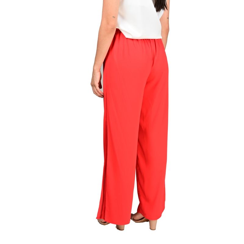 Crear outfits llamativos y de alto impacto visual gracias al color rojo vibrante y el diseño fluido del palazo.