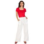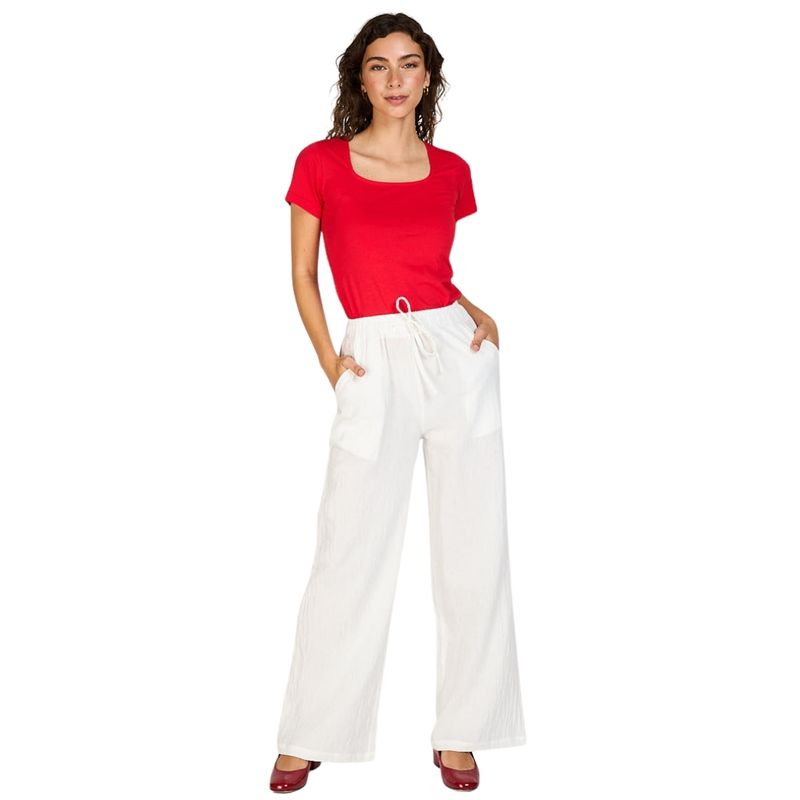 Piernas de corte ancho y recto, estilo palazzo, que aportan un look elegante y moderno.