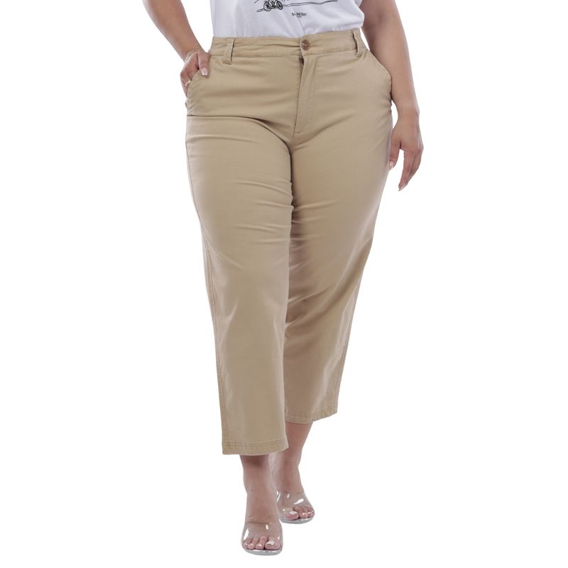 El Pantalón Khaki Chino Casual De Sarga Mujer Susan Miller combina elegancia y comodidad con un talle alto y corte casual, que se ensancha ligeramente hacia el tobillo. Su diseño clásico chino incluye pliegues sutiles y dobladillo ancho, aportando un acabado moderno y sofisticado.
