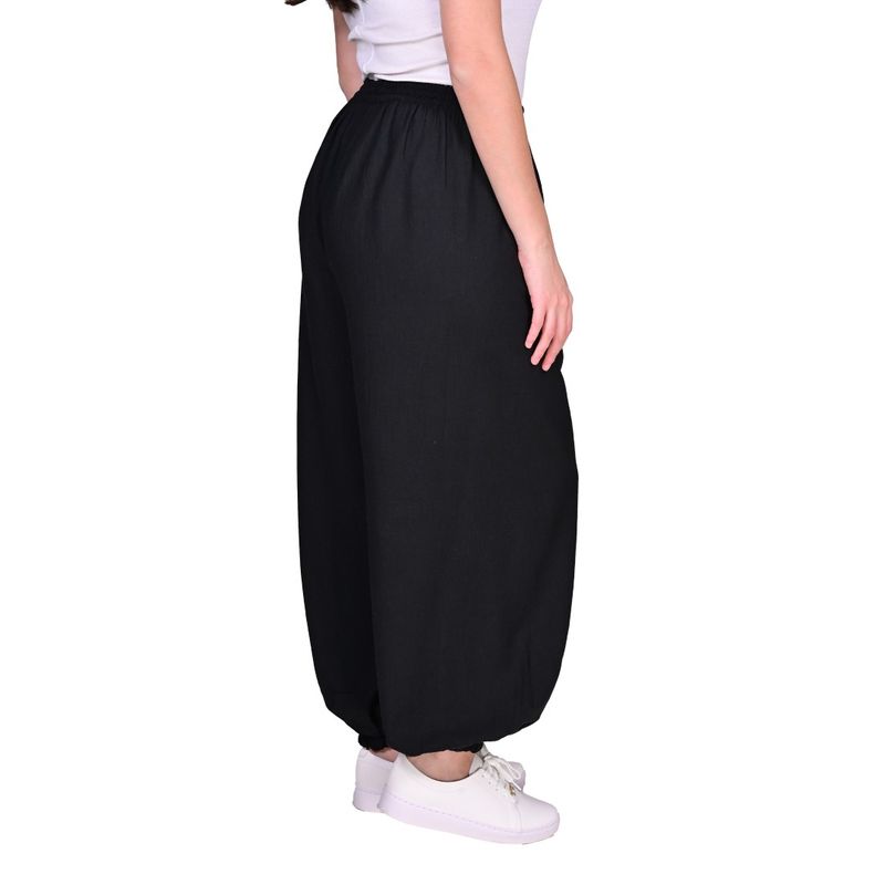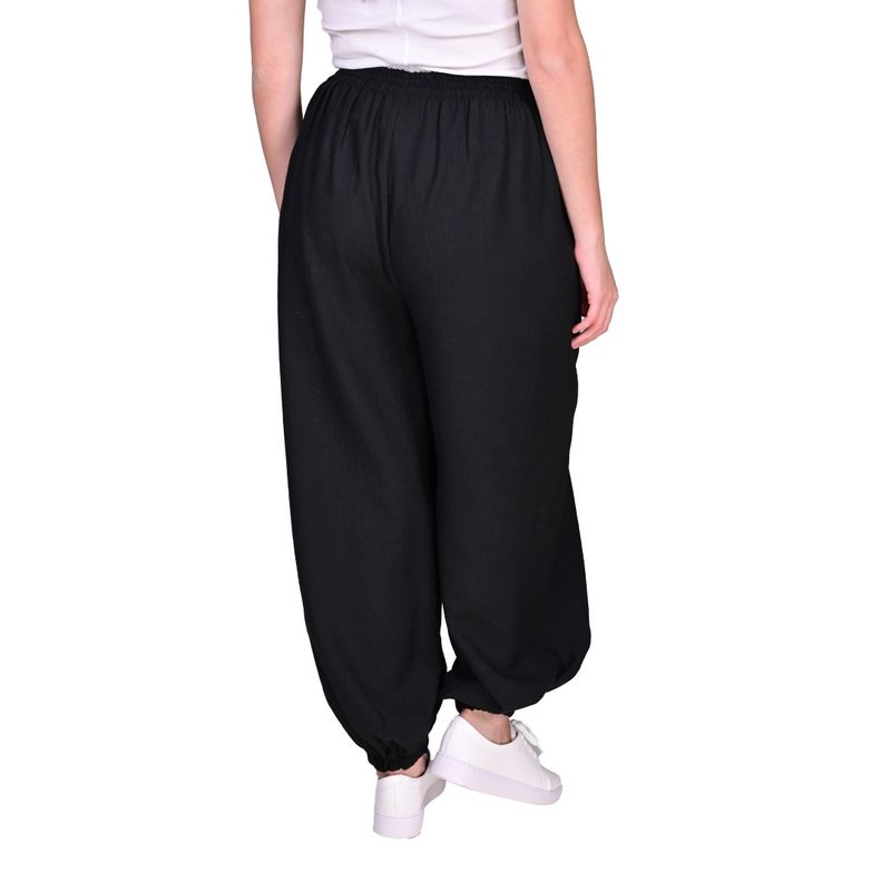 El Pantalón Negro Bombe de Tiare es una prenda femenina que combina estilo moderno y comodidad. Su diseño con cintura fruncida y puños elásticos en los tobillos ofrece un ajuste seguro y cómodo, mientras que el volumen amplio en las piernas crea una silueta abullonada y elegante. Este corte permite movimiento y fluidez, convirtiéndolo en una opción versátil para outfits casuales y sofisticados.