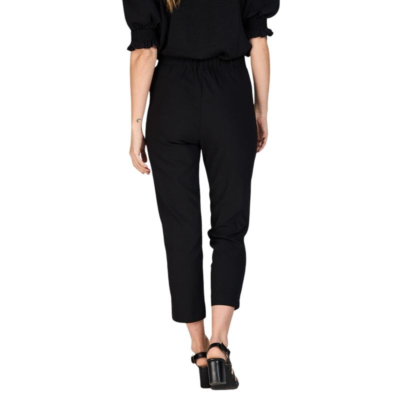 La cintura de talle alto y elástica garantiza un ajuste cómodo y seguro, adaptándose a diferentes tipos de cuerpo sin necesidad de cierres visibles. Este detalle no solo aporta confort, sino que también estiliza la figura, dando una apariencia más alargada de las piernas.