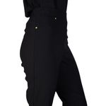 En la parte frontal, a la altura de los bolsillos simulados, se encuentran dos pequeños remaches dorados que agregan un toque de sofisticación y elegancia. La prenda no posee bolsillos traseros visibles, manteniendo una línea limpia y minimalista que realza la silueta.