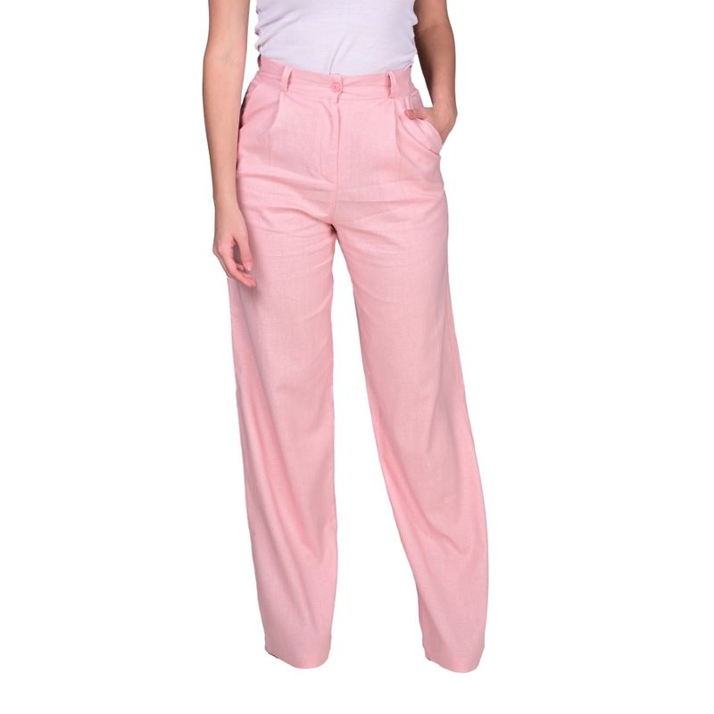El Pantalón Palazo De Lino Rosa Mujer Juliette ofrece una combinación perfecta de comodidad y elegancia gracias a su corte de pierna ancha y largo total, ideal para un look fluido y moderno. Su tiro alto estiliza la figura y aporta un toque sofisticado, mientras que las pinzas frontales y el cierre visible con trabillas en la cintura aseguran un ajuste seguro y definido.
