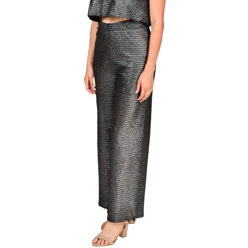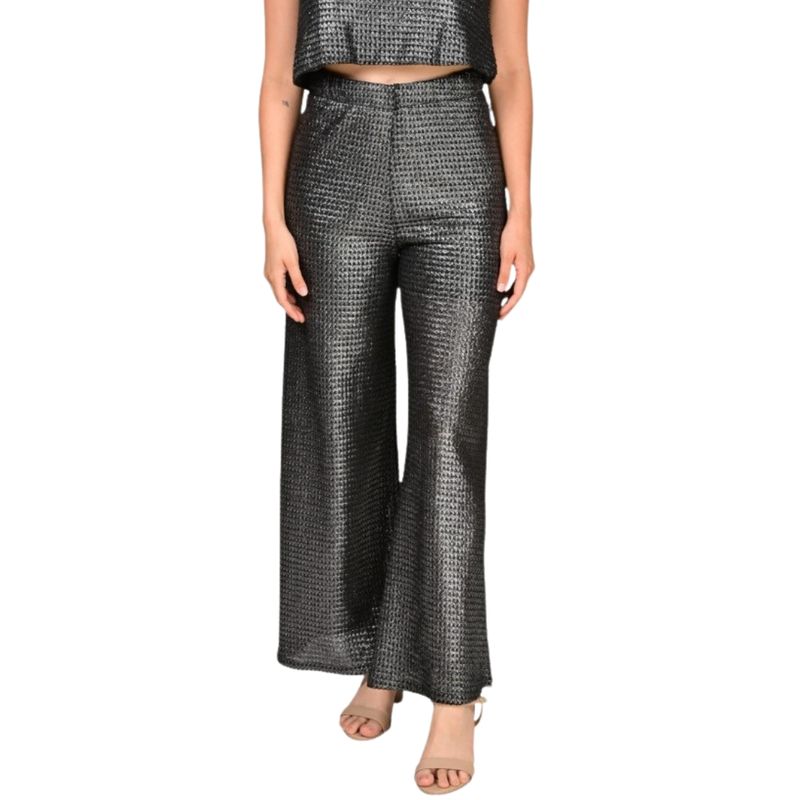 El pantalón palazo en red negro de Juliette combina elegancia y comodidad, ideal para quienes buscan un estilo moderno y sofisticado. Su diseño palazo proporciona un corte fluido y amplio, que permite libertad de movimiento y un look estilizado, perfecto para ocasiones formales o eventos sociales.