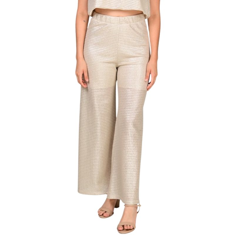 Este pantalón palazo en red plata propone un look moderno, audaz y con mucha presencia. Su calce amplio aporta movimiento y fluidez, realzando la silueta femenina con un estilo sofisticado y actual. Es una prenda ideal para quienes buscan destacarse con una propuesta diferente y de tendencia.