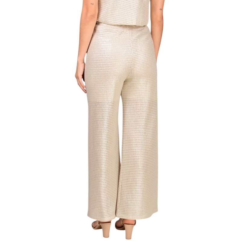 Este pantalón palazo en red combina diseño actual, comodidad y un estilo impactante, siendo una excelente opción para quienes buscan una prenda diferente y versátil para ocasiones especiales.