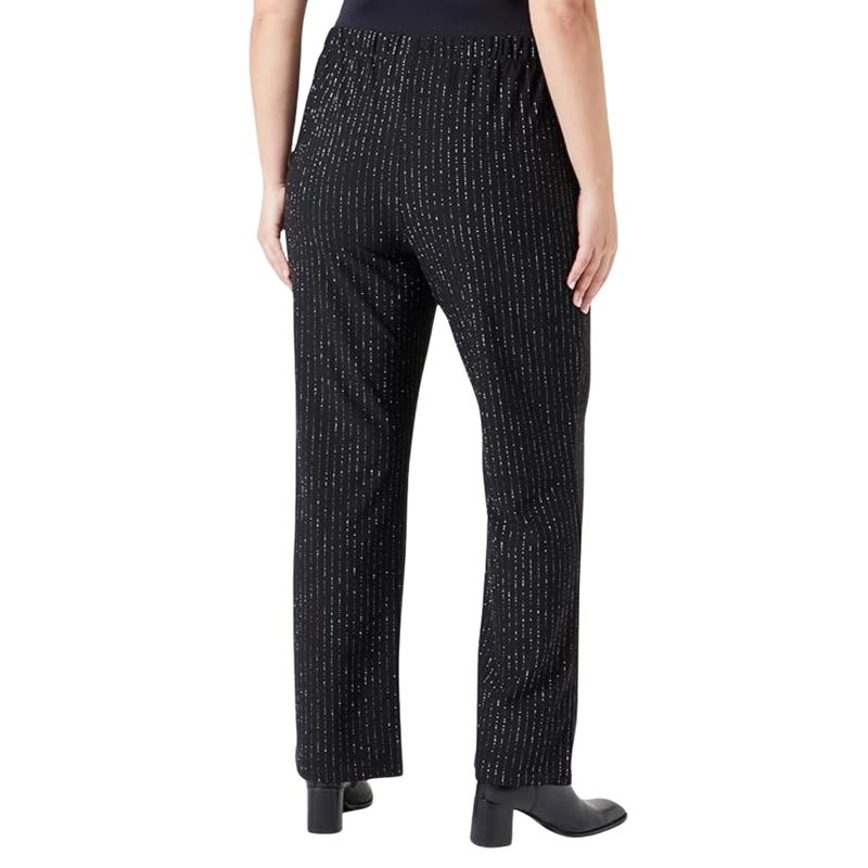 Este pantalón negro de Carmakoma combina elegancia y comodidad con un corte recto que estiliza la silueta. Presenta rayas verticales brillantes que aportan un detalle moderno y sofisticado, perfecto para quienes buscan una prenda versátil con un toque especial. Su cintura alta y tiro ajustado realzan la figura y brindan un calce cómodo y seguro.