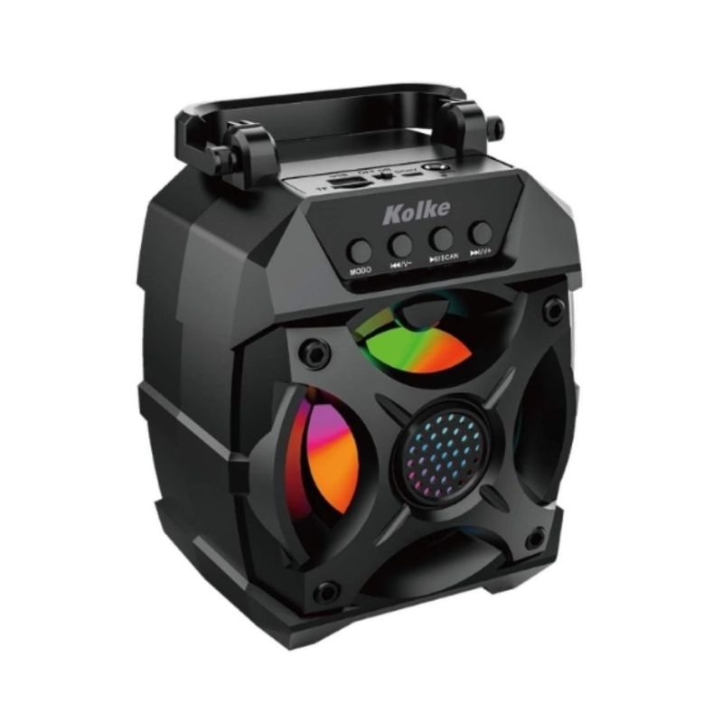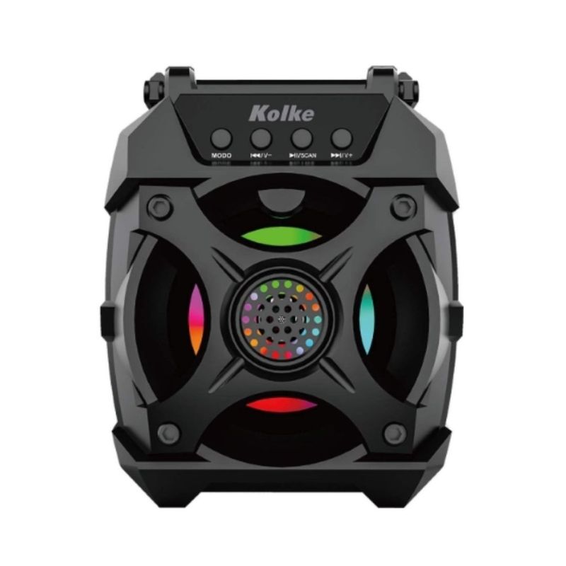 El parlante portátil Kolke Alley KPM-448 ofrece sonido de calidad con su altavoz activo de 4" y potencia de 5W. Cuenta con conexión Bluetooth 5.0 con alcance de hasta 10 metros, entradas USB, tarjeta SD y auxiliar de 3.5mm, además de radio FM. Su batería recargable de 1200mAh proporciona horas de reproducción. Incluye luces LED para ambientar tus reuniones. Dimensiones: 15.3 cm de ancho, 12.1 cm de profundidad y 19.1 cm de alto.