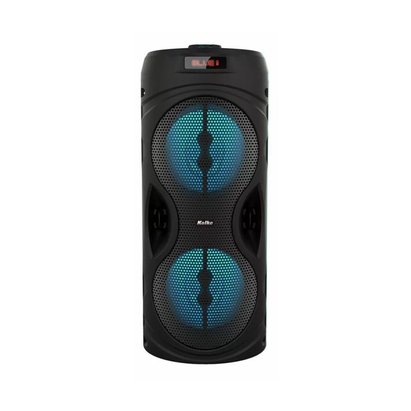El Parlante Inalámbrico Kolke Ilux KPM-511 cuenta con dos woofers de 4", ofreciendo una potencia de 80W RMS y 3.000W PMPO. Incorpora luces RGB que pueden apagarse según preferencia. Su batería recargable de 1.200mAh permite portabilidad y uso prolongado. Equipado con Bluetooth 5.0, entradas USB (hasta 32GB), SD (hasta 32GB), auxiliar y micrófono de 6.35mm. Incluye radio FM y display LED. Dimensiones: 16 x 16 x 38,5 cm.