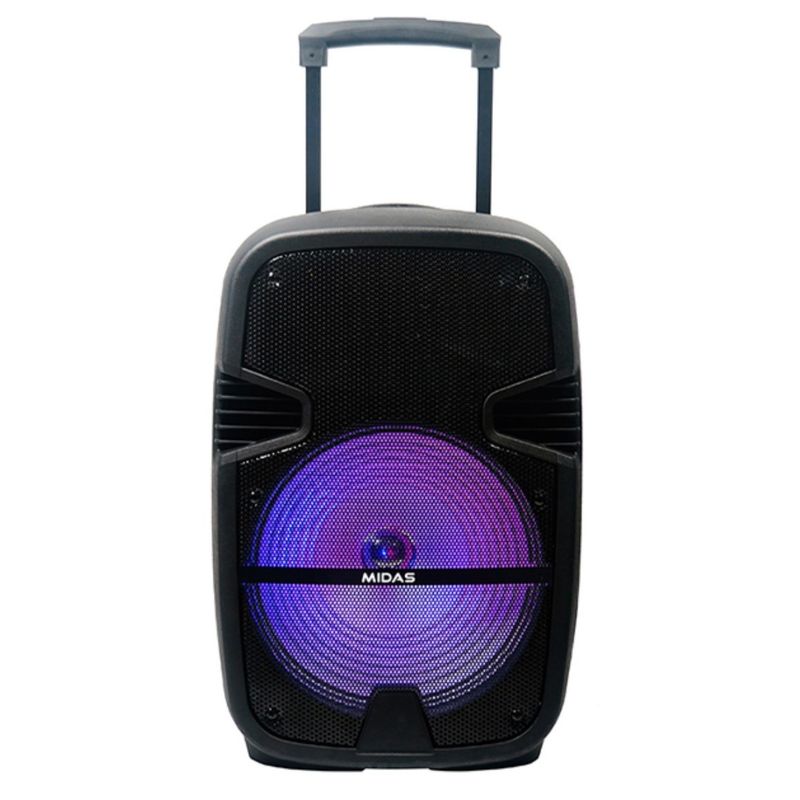 Armá la diversión en donde sea. Con el parlante portátil MIDAS MD-PS0811 lleva tus música a todas partes. Con la función Karaoke, vas a ser el alma de la fiesta, con asa de transporte y rueditas, este parlante, es el ideal para toda ocasión.