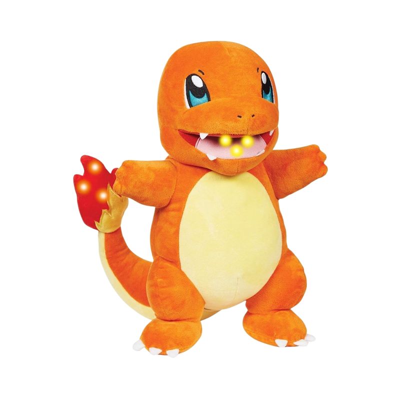 Este peluche interactivo de Charmander está inspirado en el popular anime y videojuegos de Pokémon. Con una altura aproximada de 10 pulgadas, el personaje incluye efectos de iluminación en la cola y la boca, además de sonidos auténticos que se activan al presionar su pecho o manos, ofreciendo una experiencia de juego realista y entretenida para los fanáticos de todas las edades.