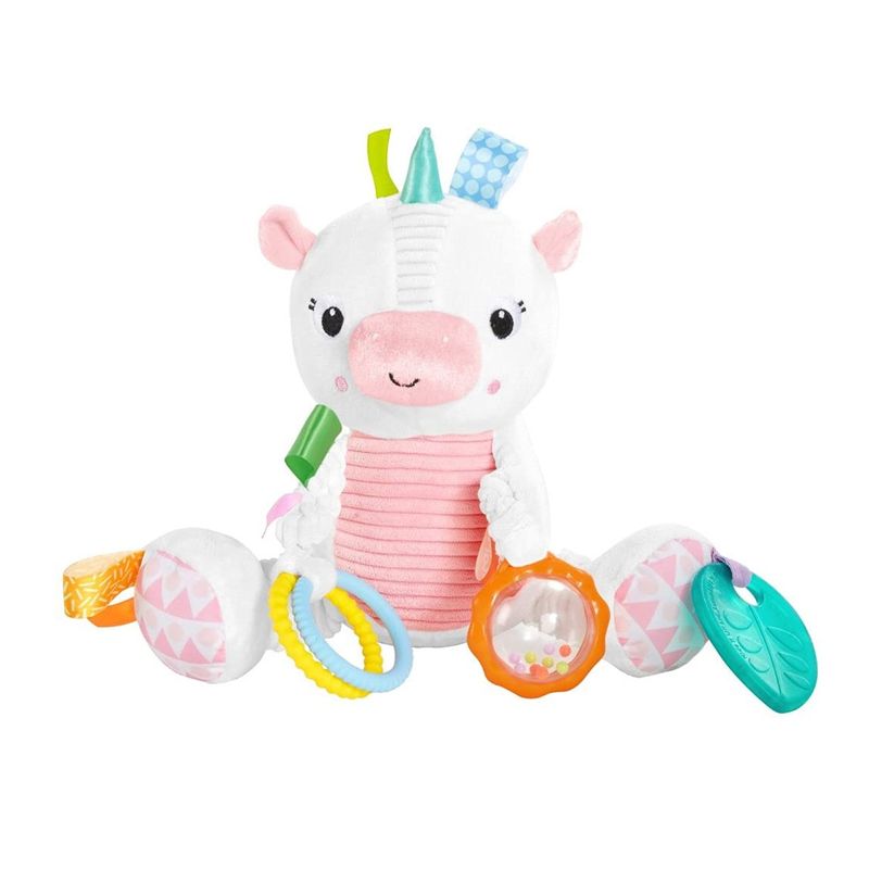 Este adorable oso de felpa fomenta el desarrollo de habilidades motrices finas mientras el bebé explora todos los diferentes juguetes y texturas.