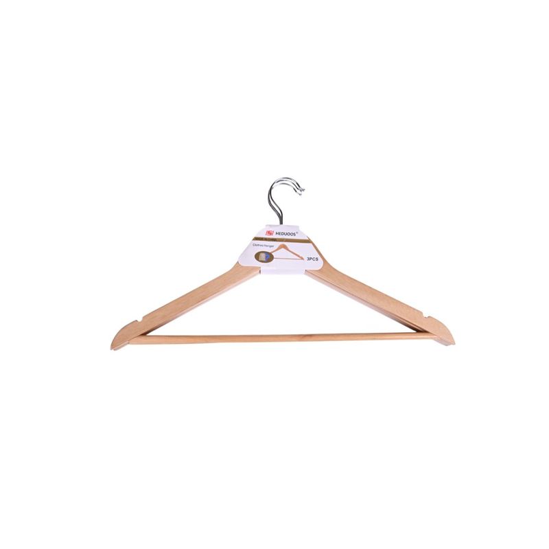 Fabricadas con madera resistente y duradera, estas perchas garantizan un uso prolongado y soportan el peso de la ropa sin deformarse ni romperse. Su acabado liso protege las telas, evitando marcas o enganches.