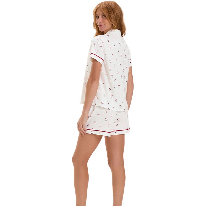 Este conjunto de pijama para mujer combina comodidad, suavidad y estilo clásico, ideal para quienes buscan un descanso reparador sin perder elegancia. Diseñado siguiendo el estilo americano, incluye una camisa de manga corta con apertura frontal y shorts a juego, ofreciendo un look armonioso y cómodo para las noches o momentos de relax en casa.