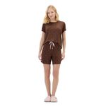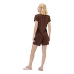 Pijama Manga Corta Marron Motas Rosas Mujer Cor Com Amor