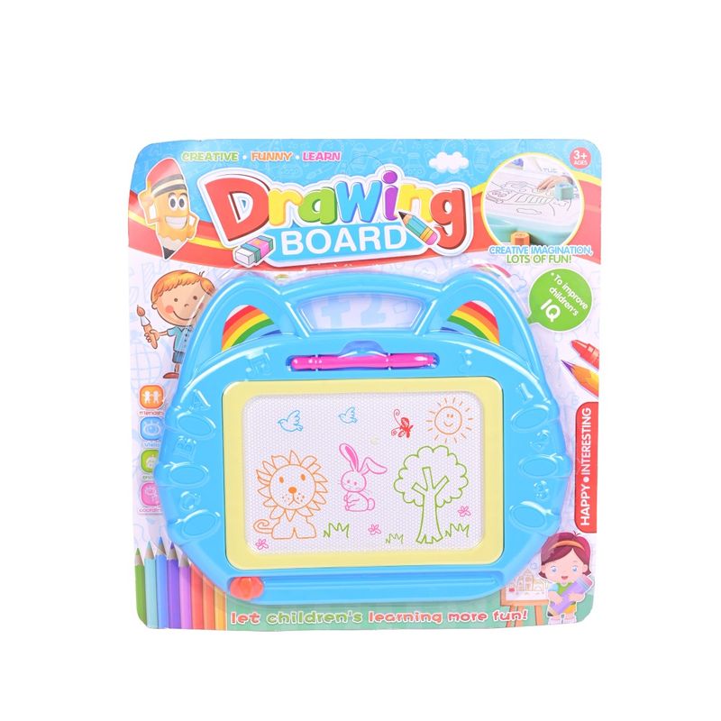 La Pizarra Magnética Con Diseño De Gato es un tablero de dibujo pensado para que los niños y niñas desarrollen su creatividad de forma divertida y práctica. Con una forma atractiva que simula la cabeza de un gato y asas en forma de orejas decoradas con colores de arcoíris, este producto permite dibujar y borrar fácilmente gracias a su tecnología magnética, facilitando la exploración artística sin necesidad de papel ni tinta.