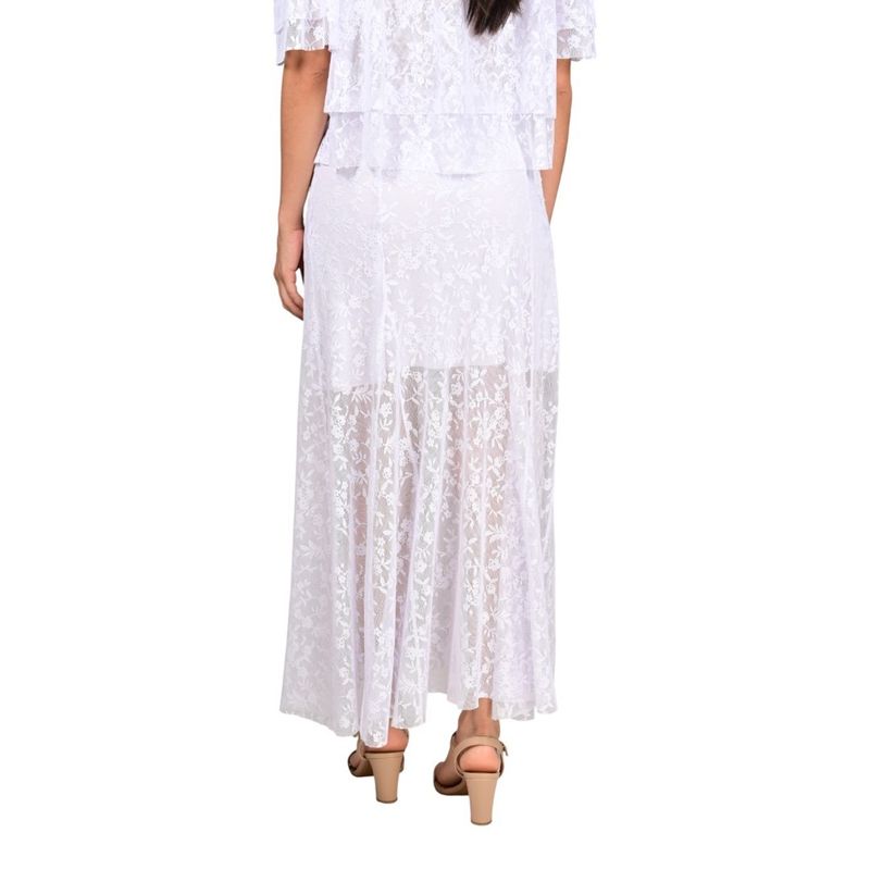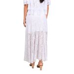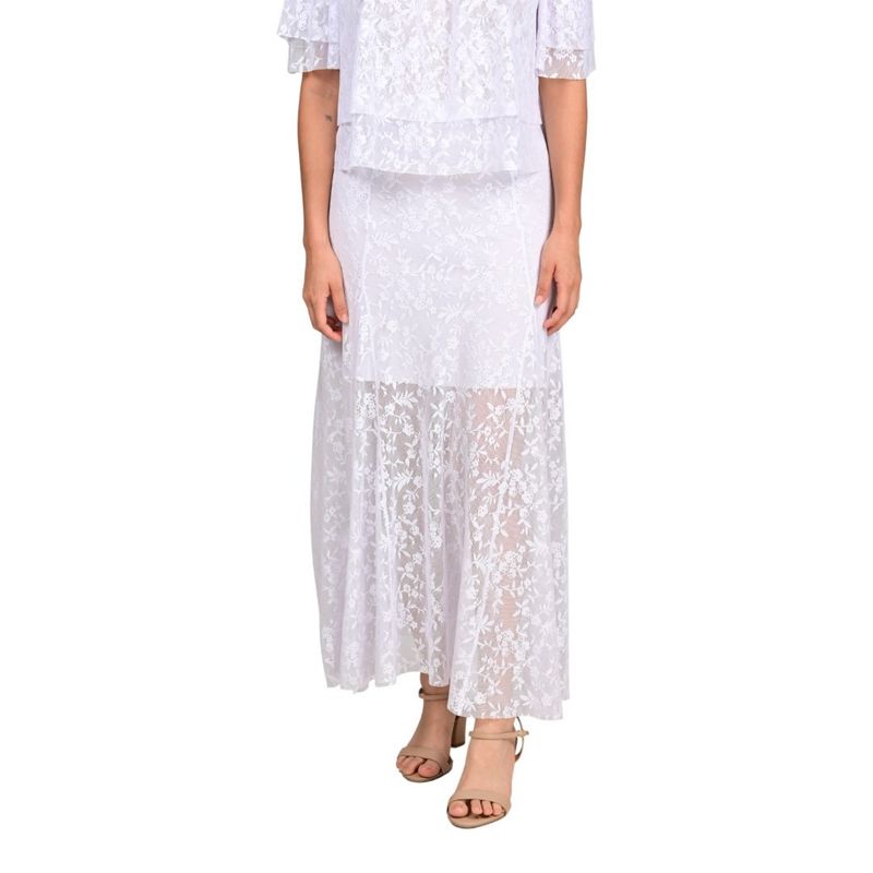 Esta pollera con nejas en tull combina delicadeza y elegancia, ideal para ocasiones especiales o eventos donde se busque un look sofisticado y femenino. Su volumen sutil y caída ligera aportan movimiento y frescura al conjunto.