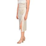 La pollera en lurex con tajo de L'exclusif es una prenda diseñada para destacar con elegancia y estilo. Su silueta femenina se realza con el detalle del tajo, que aporta movimiento y un toque moderno, mientras que el acabado en lurex suma brillo y sofisticación. Es una opción ideal para quienes buscan un look llamativo sin perder comodidad y buen calce.