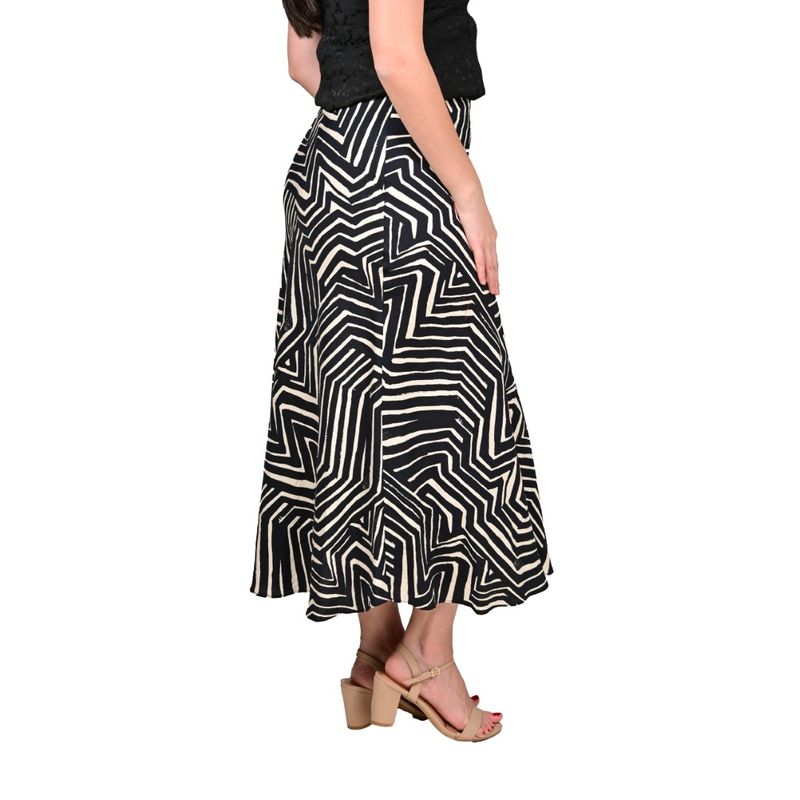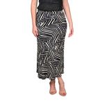 Esta pollera larga se caracteriza por su silueta fluida que estiliza la figura y su estampado geométrico en blanco y negro, una combinación clásica que nunca pasa de moda. El diseño de zigzag añade un toque contemporáneo que la convierte en una prenda versátil y distintiva.