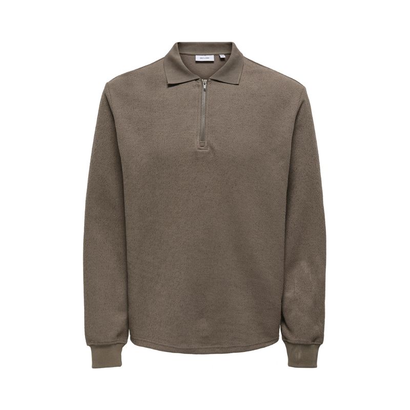 Polo de manga larga para hombre de Only & Sons con cierre corto al frente. Su tono marrón y corte moderno lo convierten en una prenda versátil para el día a día. Ideal para un look urbano, combina con jeans o pantalones rectos. Ofrece comodidad gracias a su tejido suave. Se recomienda lavar a máquina en frío y secar al aire para conservar su forma y color.